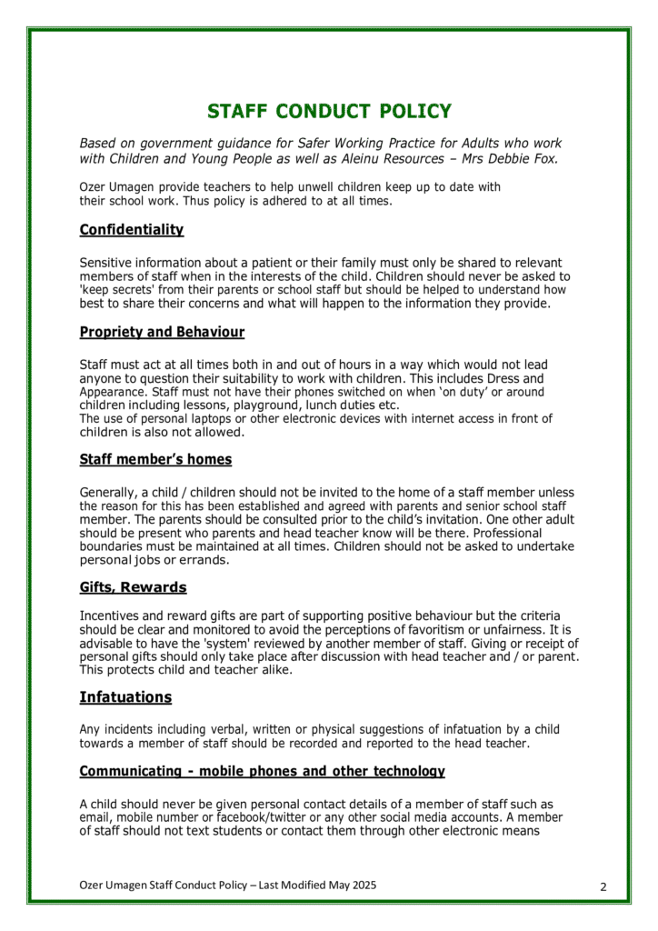• Staff Conduct